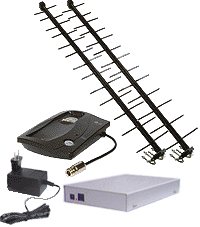 Рисунок 1 – РП телефонного каналу 3. Ефективність антен . Антени, що входять у комплект поставки, мають досить високий коефіцієнт підсилення (12–14 дБ) і вузьку діаграму спрямова-ності, що спричиняє посилення вимог до похибки в юстируванні антен. Вона не повинна перевищувати 10–15 градусів. Найкраще застосовувати горизонтальну поляризацію антен. При використанні малоефективних, до 5 дБ, кругових антен більша частина енергії випромінюється не в потрібному горизонтальному напрямку, а в небо й землю. Приріст кожних 3 дБ посилення антени рівносиль-ний подвоєнню потужності й поліпшенню чутливості. І якщо потужність можна збільшити за допомогою підсилювача, то чутливість визначає посилення антени. Дуже важливо, щоб антена точно відповідала робочим частотам телефону. 4. Загасання сигналу в антенному кабелі . Під час спроби досягти максимальної висоти підвісу антен, не слід забувати про те, що антенний кабель вносить загасання в радіосигнал, що збільшується зі збільшенням довжини кабелю. Можна розташувати телефонний інтерфейс ближче до антени (наприклад, на горищі або технічному поверсі будинку), тим самим скоротивши довжину антенного кабелю. 5. Використовуваний частотний діапазон . При виборі частотного діапазону РП враховуйте, що, наприклад, радіосигнал частотного діапазону 900 МГц практично не огинає перешкоди, а устаткування діапазону 300 МГц найчастіше дорожче. 6. Зашумленість ефіру . У деяких випадках, недалеко від місця розташування антени можуть розміщуватися джерела потужних радіопере- шкод, для боротьби з якими доводиться встановлювати в радіотракти обладнання додаткові фільтри або переходити на інший частотний діапазон. 7. Вихідна потужність передавачів . Збільшення вихідної потужності – це найменш ефективний спосіб збільшення дальності. У межах дальності до «обрію» – зазвичай 15...40 км, приріст дальності в разах від збільшення потужності приблизно дорівнює кореню четвертого ступеня із приросту потужності. Наприклад, маючи дальність у 5 км при потужності 1 Вт, для подвоєння дальності до 10 км, буде потрібна потужність в 16 Вт. Подібний розрахунок досить приблизний і не може використовуватися під час планування, але він є досить показовим при фінансовому оцінюванні проекту. Використання РП телефонних ліній і радіотелефонів зручне й виправдує себе в районах зі слабкою інфраструктурою зв'язку або з її повною відсутністю: у віддалених селах, селищах, для лісозаготівників, нафтовиків, газовиків тощо. Однак при виборі радіотелефону далекої дії необхідно мати на увазі, що не всі з них сертифіковані й, відповідно, дозволені до застосування. Телефонний РП містить у собі СБ, абонентський блок (АБ) і дві спрямовані антени. СБ безпроводового телефону (1) підключається до телефонної лінії, яку потрібно подовжити. Зазвичай це стандартна лінія ТМЗК, або одна з абонентських ліній офісної мережі. СБ не піддається жодним переробкам, за винятком випадків, коли в ньому потрібно встановити рознім для підключення зовнішньої антени (2). АБ (3) у комплекті із зовнішньою антеною (4) утворять абонентський комплект.
