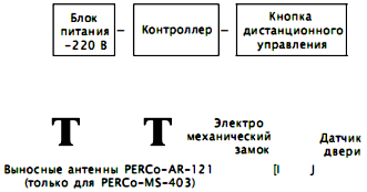 Рис. 6. Структурная схема СКУД серии «PERCoMS400» Системы серии PERCoMS400 с открыванием замка по предъявлению бесконтактных карт доступа эффективны при установке на входные двери, на двери кабинетов и служебных (подсобных) помещений офисов, банков, складов, магазинов. При установке системы на входные двери дополнительно могут быть подключены переговорные (аудио) видеоустройства. Системы серии PERCoMS400 могут использоваться в сочетании с более сложными системами контроля и управления доступом. При этом одни и те же карточки могут служить пропусками на все разрешенные к доступу объекты. Максимальное число пользователей для систем PERCoMS400 составляет примерно 500 человек. В настоящее время серия PERCoMS400 имеет несколько моделей. Для предприятия с большей численностью сотрудников целесообразно рассмотреть использование систем PERCoS600 или PERCoSYSTEM12000. Система контроля доступа PERCoMS401 предназначена для работы с бесконтактными карточками фирмы Motorola. Имеет простую (для монтажа) компактную моноблочную конструкцию. Состоит из контроллера PERCo СМ401 со встроенным считывателем и блока питания. Дальность считывания карт составляет примерно 10 см. Система рассчитана на работу при температуре от 10 до +45 °С и влажности до 95 % при 25 °С. Система контроля доступа PERCoMS402 предназначена для работы с бесконтактными карточками фирмы НЮ. Состоит из компактного контроллера PERCoCM402 со встроенным считывателем и блока питания. Дальность считывания карт до 10 см. Контроллер выпускается в варианте для наружного (уличного) применения и может работать при температуре от 25 до +50 °С и влажности до 95 % при 25 °С. Система контроля доступа PERCoMS403 предназначена для работы с бесконтактными карточками HID. Состоит из компактного контроллера PERCoRE121, малогабаритной выносной антенны PERCoAR121 и блока питания. Контроллер устанавливается внутри охраняемого помещения. К одному контроллеру можно подключить одну или две выносных антенны. Антенна размещается в пластиковом корпусе, залитом компаундом, защищающим ее как от механических повреждений, так и от воздействий внешней среды. Она обеспечивает дальность считывания карт до 10 см. Система рассчитана на работу при температуре от 40 до +50 °С и влажности до 100 %. PERCoMS403 отличается от других систем серии повышенной вандалозащищенностыо и возможностью эксплуатации в неблагоприятных климатических условиях. Система контроля доступа PERCoMS404 предназначена для работы с бесконтактными карточками HID. Состоит из компактного контроллера PERCoСМ404, малогабаритной выносной антенны PERCoAR301 (позволяет не доставать карту из бумажника или сумки, чтобы открыть замок) и блока питания. Она обеспечивает дальность считывания карт до 30 см. Система рассчитана на работу при температуре от 25 до +50 °С и влажности до 98 %. Система /шаткого доступа PERCoS700 предназначена для управления доступом и автоматизации расчетов. В качестве билетов в системе используются бесконтактные смарткарты или карты с магнитной полосой. Сфера применения системы: горнолыжные курорты, выставочные центры, аттракционы, спортивнооздоровительные комплексы, аквапарки, пляжи, плавательные бассейны т.п. Для системы PERCoS700 характерна автономная работа всех компонентов без объединения в сеть. Работа системы PERCoS700 основана на использовании пластиковых карт в качестве «электронных кошельков», в которые заносится вся нео