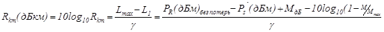 где dkm – расстояние в километрах; L 1 – значение потерь для dkm =1 ; γ – закон распределения энергии. На краях соты, dkm = Rkm и потери равны Lmax . Таким образом, полное выражение для радиуса соты в километрах имеет вид
