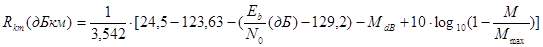 L 1 = 123,63 и γ=35,421/10=3,542. Подставляя все это в (58), получаем выражение с параметрами Eb / N 0 , MdB , M , Mmax :