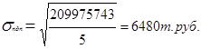 Приведенные в таблице данные показывают, что у предприятия в 2001 – 2003 годах имеется излишек денежных средств, хотя и небольшой. А в 2004 и 2005 годах недостаток денежных средств составил 45 и 3824 т. руб. соответственно. Для оценки степени равномерности формирования и синхронности положительного и отрицательного денежных потоков рассчитаем следующие показатели: среднеквадратическое отклонение, коэффициент вариации и коэффициент корреляции, формулы которых рассмотрены в 1 главе. Среднеквадратическое отклонение показывает абсолютное отклонение индивидуальных значений от среднеарифметического уровня показателя: