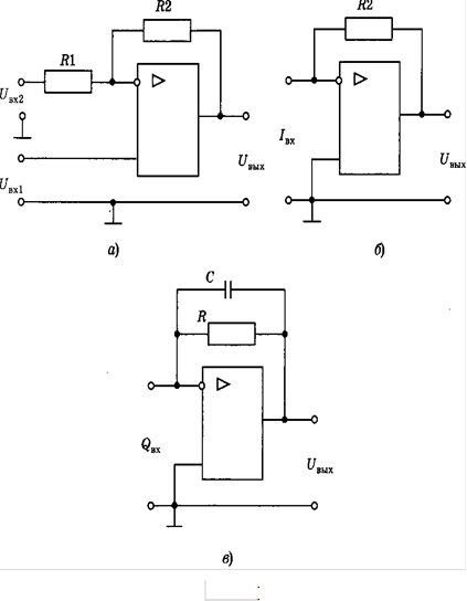 Содержание Введение Вторичные измерительные преобразователи и АЦП 1. Усилители 2. Делители напряжения и мосты 3. Фазометры и частотомеры 4. Специфика вторичных преобразователей для датчиков перемещений Литература ВведениеТема реферата по дисциплине "Информационные измерительные средства" - "Вторичные измерительные преобразователи и АЦП". Применение и развитие измерительной техники всегда было обусловлено потребностями производства, торговли и других сфер человеческой деятельности. Контрольно-измерительные операции давно стали неотъемлемой частью технологических процессов и в значительной степени определяют качество выпускаемой продукции. Прогресс измерительной техники неразрывно связан с научно-техническим прогрессом. Новые научные и технические задачи приводят и к новым измерительным задачам, для решения которых нужны новые средства измерений (СИ), а новые научные и технические результаты влияют на уровень измерительной техники: повышается точность измерений, и расширяются диапазоны измерения; растет номенклатура измеряемых величин; увеличивается производительность измерительных операций, и за счет их автоматизации уменьшается влияние человеческого фактора; возрастает число выполняемых функций. Информационные измерительные системы (ИИС) являются одним из наиболее ярких примеров этой взаимосвязи. Появление ИИС обусловлено в первую очередь конкретными задачами производства и научных исследований, требующих получения, обработки, отображения и хранения больших объемов измерительной информации. ИИС являются симбиозом аппаратных средств и алгоритмов обработки измерительной информации. Вторичные измерительные преобразователи и АЦПОсновной функцией вторичных измерительных преобразователей (ВИП) является преобразование информации, выдаваемой первичными преобразователями, в напряжение, подаваемое на АЦП. В каждом конкретном случае вид и функции вторичного преобразователя определяются видом первичного преобразователя. В предыдущем параграфе различные датчики были сгруппированы по виду измеряемой величины. Однако при выборе ВИП определяющим является вид выходной величины, а преобразуемая первичным преобразователем физическая величина уже не имеет существенного значения. ВИП характеризуются теми же показателями, что и ПИП, то есть прежде всего функцией преобразования и показателями погрешности. Кроме того, появляется специфический показатель - требования к источникам питания, поскольку качество питающего напряжения (величина, стабильность, отклонение формы, фон и другие помехи) существенно влияет на качество выполнения преобразователем своих функций, рассмотрим основные виды ВИП, ориентированных на различные группы выходных величин ПИП. 1. УсилителиДля датчика генераторного типа, как уже отмечалось, вторичный преобразователь может и не понадобиться, если сигнал самого датчика достаточно велик. В противном случае вторичные преобразователи усиливают сигнал и при необходимости изменяют его постоянную составляющую. В этом случае используется стандартная схема операционного усилителя с отрицательной обратной связью (рис.1, а).