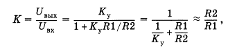 Рис. 1. Коэффициент усиления такого усилителя определяется отношением сопротивлений резисторов R2 и R1: