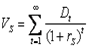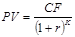 Здесь PV — текущая стоимость облигации, CT — номинал облигации, y — фактор дисконтирования (ставка альтернативных вложений), 1.T — время (количество временны́х периодов), оставшихся до даты погашения облигации. Соответственно ставка y должна указываться на один период оценка стоимости обыкновенной акции осуществляется по формуле: