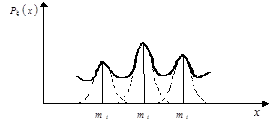 У цьому випадку На рис.6 для прикладу показано, як за допомогою гаусових розподілів апроксимується щільність розподілу складнішого виду