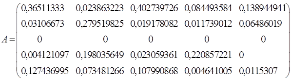 Составим новую матрицу межотраслевого баланса (с точностью до второго знака после запятой). Для этого воспользуемся формулами