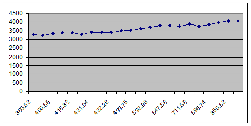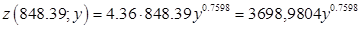 Как можно видеть из табличных значений и графического представления, расчетные значения, по крайней мере, повторяют тенденцию фактических значений с ошибкой порядка ±7%. 4. Оценим эластичность производственной функции по объему загруженного капитала и количеству отработанных часов, т.е. эластичность функции z по переменной х и эластичность функции z по переменной у. В общем виде эластичность степенной производственной функции от двух переменных будет выглядеть следующим образом