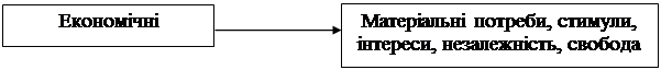Рис. 1.2. Організаційно-правові форми підприємств Таким чином, однією з ознак, за якими класифікуються підприємства, є чисельність працівників і обсяг господарського обороту відповідно до якої виділяють такі підприємства: великі; середні; малі. Здійснювати малу підприємницьку діяльність можуть громадяни України, інших держав, не обмежені законом у правоздатності або дієздатності та юридичні особи всіх форм власності, встановлених Законом України “Про власність” [1]. Якщо розглядати мотивацію як систему, яка спонукає до розвитку господарської діяльності, то можна виділити такі її чинники (рис. 1.3):