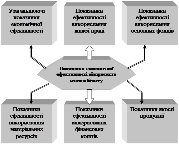Рис. 1.3. Схема мотивів господарської діяльності.Таким чином, підприємницька діяльність спонукається певними мотивами, основним з яких є забезпечення певного рівня життя людей через створення матеріальних благ. Система мотиваційних механізмів будь-якої підприємницької діяльності ефективно працює, коли вони реалізовані; система мотивів має бути сприйнятою для розуміння; мотиви підприємства взагалі і кожного окремого працівника мають бути взаємозалежними і доповнювати один одного. Малі підприємства при здійсненні господарської та іншої діяльності мають право з власної ініціативи приймати будь-які рішення, що не суперечать законодавству України. Втручання в господарську та іншу діяльність малих підприємств з боку державних, громадських і кооперативних органів, політичних партій і рухів не допускається, крім випадків, передбачених законодавством України. У разі поставок малим підприємством товарів, виконання робіт, надання послуг для задоволення державних потреб держава має сприяє забезпеченню його матеріально – технічними та іншими ресурсами. У передбачених законом випадках мале підприємство або громадянин, який працює на малому підприємстві по найму, може бути залучений до виконання в робочий час державних обов’язків. Орган, що приймає таке рішення, відшкодовує малому підприємству відповідні збитки. 1.2 Методика визначення економічної ефективності господарювання підприємств В умовах ринкової економіки, конкурентної боротьби з’являється необхідність постійного контролю за впровадженням у виробництво останніх досягнень науково-технічного прогресу, тобто нової техніки, технології й організації виробництва. Для цього на підприємствах складаються плани організаційно-технічного розвитку і підвищення економічної ефективності виробництва. Впровадження включених у ці плани заходів дозволяє збільшити випуск продукції і поліпшити її якість, підвищити продуктивність праці, знизити собівартість продукції і т.д. При аналізі виконання планів організаційно-технічних заходів підприємства в першу чергу розглядають повноту і своєчасність їхнього виконання, і, що особливо важливо, – фактичну економічну ефективність. При невиконанні чи несвоєчасному виконанні будь-якого передбаченого в плані заходу малому підприємству наноситься збиток. Воно не зможе в цьому випадку досягти наміченого планом рівня організації виробництва, одержати передбачену економічну вигоду (прибуток), а це може негативно позначитися на фінансовому стані малого підприємства і мати інші небажані наслідки [3]. Основні виробничі фонди являють собою сукупність вироблених суспільною працею матеріальних цінностей, що діють у незмінній натуральній формі протягом тривалого періоду, неодноразово беруть участь у процесі виробництва та втрачають свою вартість у міру зношування [4]. Підвищення ефективності виробництва підприємства в першу чергу залежить від більш високих темпів розвитку активної частини основних виробничих фондів. Аналіз структури і росту основних виробничих фондів дозволяє визначити, у якому напрямку йшов їхній розвиток. Фондовіддача є узагальнюючим показником ефективності використання основних виробничих фондів. Ефективність використання фондів характеризують і такі показники, як коефіцієнт використання потужності, 