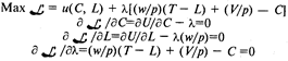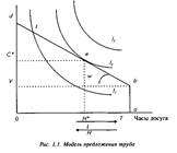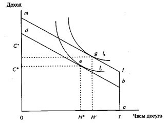 Из этого следует, что максимизирующее индивидуальную полезность решение о распределении времени на досуг и работу будет подчиняться условию: