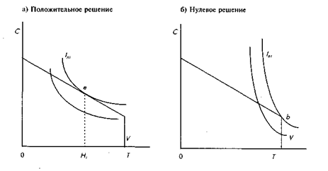 Рис. 1.2 - Решение об участии в рабочей силе Если заработная плата меньше резервной, то оптимальное количество часов работы, максимизирующее полезность человека, будет нулевое: Н * = 0 при w <wr . Если заработная плата больше резервной, то оптимальное количество часов работы будет положительным. труд предложение оплата самозянотость Н * > 0 при w ³wr . Резервная заработная плата показывает, сколько денег следует предложить человеку, не участвующему в рабочей силе, чтобы он отказался от часа досуга и приступил к работе. На рис. 1.3 она соответствует углу наклона индивидуальной кривой безразличия в точке А и характеризует предельную норму замещения досуга доходом в этой точке.