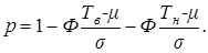 По сути этой вероятностью определяется вероятная доля годной продукции (по контролируемому параметру). Если из единицы вычесть вероятную долю годной продукции, то получим вероятную долю дефектной продукции, которую обозначим через