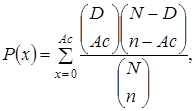 Таким образом, процесс будет признаваться налаженным до тех пор, пока выборочное среднее арифметическое 1.2.2 Контроль по альтернативному признаку При контроле по альтернативному признаку мы имеем дело с дискретными случайными величинами – это число дефектных единиц продукции или число дефектов. При статистическом регулировании возникает задача выбора критерия для оценки состояния технологического процесса. Здесь могут быть разные подходы. Рассмотрим один из них, на основе которого строятся контрольные карты. По периодически отбираемым выборкам объема Видимо это число должно быть таким, при котором хорошие партии будут приниматься с большой вероятностью, что и будет свидетельствовать о налаженном состоянии технологического процесса. Эту вероятность вычисляют по известной в теории вероятностей формуле, которую называют функцией гипергеометрического распределения: