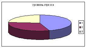 Рис.1 1-высокий уровень стресса; 2-средний уровень стресса; 3-низкий уровень стресса. Второе, был проведен опрос о том, какие последствия стресса возникают у преподавателей высокого, среднего и низкого уровня стресса. В ходе анализа данного опроса было выявлено, что самым популярным ответом, среди преподавателей среднего уровня стресса, на вопрос «Как на вас влияет стресс?» были следующие утверждения: 1.«К концу рабочего дня я сильно устаю, и на домашние хлопоты совсем нет сил и времени!» 2.«Я, как и ученики, жду каникул!» Преподаватели, обладающие высоким уровнем стресса, выбрали следующие утверждения: 1.«Я могу сорваться на учениках!» 2.«Придя, домой, я несколько часов отдыхаю!» Преподаватели, у которых низкий уровень стресса, выбрали утверждение: 1. « Я, как и ученики, жду каникул!» В соответствии с полученными данными, вызывает интерес и метод борьбы со стрессом, у определенной группы людей, т.к. преподавательский состав в основном состоит из женщин, было выявлено, что справится со стрессом, помогают такие методы, как «поболтать с подружкой, коллегами». Некоторые, для борьбы со стрессом заводят домашних питомцев и заботятся о них, но есть и те, кто не прочь «пропустить и пару рюмок» для снятия стресса. 3.4 Вывод исследования и некоторые рекомендации по борьбе со стрессом Проведенное исследование актуально, а поэтому и интересно. Опираясь на данные практической работы, можно подчеркнуть, что на вопрос, «приходится ли вам испытывать стресс на своей работе?» все 25 человек ответили положительно, но при этом у всех разные уровни стресса, но последствия схожи. На многих преподавателей стресс оказывает большое влияние, не только физически, но и морально. А этому способствуют такие факторы, как напряжение, страх за огромную ответственность, боязнь начальника. Все это, постепенно, вызывает стресс, а само его присутствие мешает рабочему процессу. При высоком уровне стресса, преподаватель проводит свои занятия не охотно и не раскрывается в полной мере. При среднем уровне стресса, преподаватель старается не брать на себя много ответственности (кружки, научные работы). Низкий уровень стресса, как правило, к нему относится, преподаватели, для которых работа это жизнь, кроме работы у них ничего нет, они являются метрами в своем деле. Дорогие преподаватели, Профессия преподавателя, которой вы занимаетесь, имеет большое значение для каждого человека, без знаний, которые вы нам даете дают нам не стать образованным и не найти места в жизни человеком. . Во-первых, берегите себя нужно, следите следить за своим здоровьем, при конфликтах ищите искать компромиссы, одним словом кто, если не вы позаботится о вашем здоровье! Во-вторых, ранее в моей работе было сказано, как бороться со стрессами, так вот больше занимайтесь спортом, бывайте чаще на воздухе спортом, не забывайте об общении с природой, она дарит необходимую тишину и покой, занимайтесь делами, которые приносят радость. Т.е. делаете все, что полезно для души и для здоровья. Заключение При ритме современной жизни без стресса никуда. Нас окружает огромное количество неблагоприятных факторов. Подавленность, плохое самочувствие – вот главные признаки стресса. У человека, активно работающего в управленческой сфере, количество таких неблагоприятных факторов увеличивается вдвое – ведь на нем лежит груз ответ