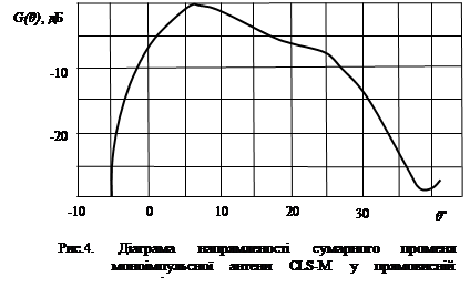 Втрати потужності через зменшення диференціального коефіцієнта підсилення антени запиту при відхиленні кута місця Δθ від його значення, коли коефіцієнт підсилення має максимум, можна визначити за ДН сумарного променя антени у прямовисній площині, показаної на рис.4. Подана на рисунку ДН належить антені CSL-M моноімпульсного вторинного радіолокатора IRS-20MP/L фірми Indra. Діаграма є типовою для більшості антен сучасних моноімпульсних вторинних радіолокаційних станцій.