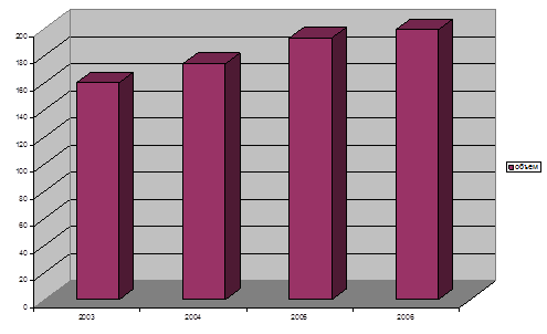 Как видно из таблицы 2, абсолютные и относительные величины НДС к зачету показывают разнонаправленные величины. При значительном росте абсолютных показателей доля НДС к зачету в оборотных активах снижается, что свидетельствует о "взрослении" компании. Динамика показателей НДС показывает активный рост с 2006 года, что свидетельствует о росте объемов имущества, приобретаемого в лизинг (за 2005 год он составил 70,9%).