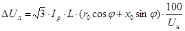 де Iр.ф - розрахунковий струм одної фази лінії, А; L - довжина лінії, км; r0, x0 - відповідно, активний та реактивний питомий опір лінії, Ом/км:
