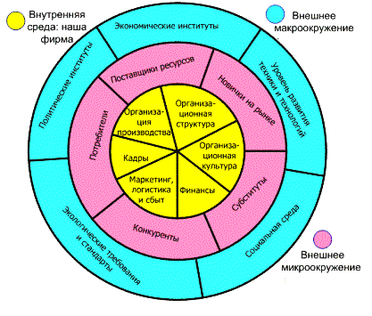 Рисунок 1.1 Разделение рыночной среды на внешнюю и внутреннюю в стратегическом менеджменте и в маркетинге Итак, для наглядности изобразим все три среды в виде вложенных друг в друга кругов.