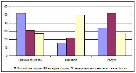 Рис. 2.1. Отраслевая структура исследуемых фирм В процессе изучения механизмов внутрифирменной координации были выделены такие 3 группы инструментов: формальные (децентрализация, программирование, планирование и др.), неформальные (личные контакты, формирование организационной культуры); гибридные (временные коллективы, стратегические проекты, инновационные центры). В процессе опроса немецкими фирмами отмечено более высокое значение неформальных и гибридных механизмов координации: 80% фирм в Германии высказались в их пользу, тогда как в России – только 60. Для 80% российских опрошенных предприятий на первом месте остаются формальные механизмы. Как известно, в мировой практике ведущих западных фирм наблюдается переход к развитию адаптивных организационных структур, обеспечивающих быстрое приспособление и гибкую реакцию на изменение окружающей среды. Уровням развития конкретной организационной формы в исследовании соответствовали следующие коэффициенты мультипликации, на которые умножался процент ее назвавших: иерархическая структура – 1, региональная или продуктовая структура – 2, матричная структура – 3, сетевая структура – 4, виртуальная и проектная организация – 5 (приложение А). Среди опрошенных российских фирм 77,5% отдали первое место иерархической структуре управления. В то же время ими практически не применяются такие современные организационные формы, как сетевая, виртуальная, международные коллективы и проектные группы. Для немецких фирм как раз последние приобретают все большее значение, что во многом объясняется их активной пропагандой. Особое внимание в анкете было уделено использованию инструментов организационной культуры, среди которых выделялись: постановка единых целей, разработка единой стратегии, формулирование совместных ценностей и норм, ротация кадров, система мотивации, повышение квалификации. Немецкие фирмы как в Германии, так и в России занимали лидирующее место по всем позициям. Российские фирмы применяют данные инструменты в меньшей степени, хотя отмечается их использование, прежде всего, создаваемыми холдинговыми и вертикально-интегрированными структурами. Таким образом, проведенный опрос и сравнение опыта российских и немецких фирм позволили получить следующие выводы для российской стороны: большинство опрошенных российских представителей осознает необходимость коренных преобразований, вместе с тем не располагает достаточной информацией о наиболее актуальных организационных формах и инструментах; представители российской стороны отдают предпочтение иерархическим структурам перед малоизвестными, но перспективными сетевыми формами организации, высоко ценя при этом значение личных отношений при ведении бизнеса; руководство российских фирм не уделяет необходимого внимания созданию атмосферы и условий для полного задействования потенциала своих сотрудников. 2.2 Анализ организационной структуры предприятия на примере компании «Комплект-Сервис» Компания Комплект-Сервис (КC) уже более 10 лет является одним из признанных лидеров российского рынка комплектующих для производства оконных, дверных конструкций и стеклопакетов. В 1995 году компания вышла на новый для России рынок комплектующих для светопрозрачных конструкций, первой организовав оптовый склад профиля ПВХ.