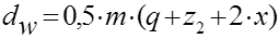 1. Модуль m = 2. Делительный диаметр 3. Межосевое расстояние Через