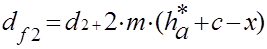 df – диаметр впадин β – предп-ый угол наклона зуба (β=0 – для прямоз.) hf – коэф. ножки зуба x – коэф. смещения Получаемый модуль округляется до ближайшего большего значения. При необход-сти подогнать знач-е модуля под станд-ное возможен пересмотр угла наклона β, числа