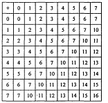 Преобразования чисел из двоичной в восьмеричную и шестнадцатиричную системы и наоборот столь просты (по сравнению с операциями между этими тремя системами и привычной нам десятичной) потому, что числа 8 и 16 являются целыми степенями числа 2. Арифметические действия с числами в восьмеричной и шестнадцатиричной системах счисления выполняются по аналогии с двоичной и десятичной системами. Для этого необходимо воспользоваться соответствующими таблицами. Для примера табл. 1.7 иллюстрирует сложение и умножение восьмеричных чисел. Есть еще способ перевода чисел из одной позиционной системы счисления в другую - метод вычитания степеней . В этом случае из числа вычитается максимально допустимая степень, умноженная на максимально возможный коэффициент, меньший основания; этот коэффициент и является значащей цифрой числа в новой системе. Например, число 114(10): 114 - 26 = 114 – 64 = 50, 50 - 25 = 50 – 32 = 18, 18 - 24 = 2, 2 - 21 = 0. Таким образом, 114(10) = 1110010(2). 114 – 1 ∙ 82 = 114 – 64 = 50, 50 – 6 ∙ 81 = 50 – 48 = 2, 2 – 2 ∙ 8° = 2 – 2 = 0. Итак, 114(10)= 162(8). Таблица 1.7 Таблицы сложения и умножения в восьмеричной системе Сложение