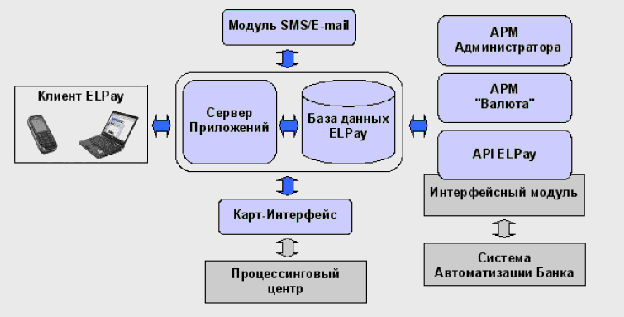 Рис. 2.13. – Структурна схема інформаційних потоків в платіжно-інформаційній системі «Internet Banking» Клієнт ELPay – це сервіс, розрахований на мобільного користувача, що з будь-якої точки підключення до Інтернет може управляти своїм рахунком. Для роботи сервісу використовується постійне з'єднання з Банком під час сеансу роботи. Спрощено технологію роботи даного сервісу можна описати в такий спосіб. Клієнт системи одержує доступ до свого рахунку за допомогою веб-браузера з будь-якого комп'ютера, що має доступ у мережу Internet. При цьому з веб-сервера на робочу станцію клієнта автоматично завантажується програмне забезпечення у вигляді апплета, реалізуючи технологію "тонкого клієнта". Апплет, завантажений з веб-сервера, забезпечує безпосередню (минаючи веб-сервер) взаємодію клієнта із серверами додатків і баз даних, що розтало-вуються в банку. У системі ELPay використовуються наступні методи захисту: цифровий підпис платіжного доручення (один або два підписи); шифрування даних на прикладному рівні, переданих на ділянці "клієнт-сервер додатків"; аутентифікація при підключенні клієнта до сервера додатків; контроль цілісності й аутентифікації завантаженого клієнтові прог-рамного забезпечення. У системі використовуються сертифіковані кошти криптографічного захисту інформації "Шифр", зареєстровані 24.09.2007 р. у реєстрі Укрсепро №UA.1.112.0129807-07, що реалізують: шифрування на основі алгоритму криптографічного перетворення за ДСТУ 28147-89; процедури вироблення й перевірки електронного цифрового підпису на базі асиметричного криптографічного алгоритму ДЕРЖСТАНДАРТ 34.310-95; процедури хеширування інформації з ДЕРЖСТАНДАРТ 34.311-95; процедури генерації й керування ключами відповідно до затвердженого технічним завданням (UA/23154898/ 00001-01 90 01-ЛУ). При установці серверів ELPay у банку й підключенні сервера додатків до Інтернет найбільш важливим є визначення політикиі безпеки. Реалізація політи-ки безпеки дозволить уникнути можливих атак з Інтернет, що мають метою одержати доступ до конфіденційних даних або вивести з ладу інформаційні ресурси банку. При цьому особлива небезпека укладається в можливій атаці на інформаційні сервера автоматизованої банківської системи. Політика безпеки визначається для всіх мережних ресурсів банку, для яких можливе зіткнення з Інтернет. До їхнього числа ставляться (рис.2.24): 1. Сегмент мережі із Системою Автоматизації Банку (САБ). Даний об'єкт політики безпеки є найбільш важливим, що не допускає ніяких вхідних мереж-них з'єднань, ініціалізованих поза сегментом САБ. 2. Сервери ELPay (сервер додатків і сервер баз даних). Інформація, утримувана на цих серверах також вимагає відповідних технічних і організаційних заходів безпеки. Тут також неприпустимі ніякі вхідні з'єднання, крім передба-чених регламентом роботи сервера додатків. 3. WEB-Сервер. Даний елемент містить завантажуєме клієнтові програмне забезпечення (ПО), що, у свою чергу критично до модифікації. Захист ПО від модифікації здійснюється незалежними від веб-сервера засобами, тому вимоги до рівня безпеки веб-сервера обумовлюють лише надійністю роботи самого сервера.