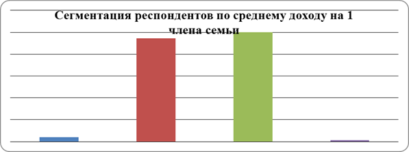 Также нами была проведена сегментация на основе такого параметра как средний доход на 1 члена семьи. Оказалось, что 47,3% опрошенных имеют доход от 5 до 10 тыс. руб. на 1 члена семьи, 50% опрошенных имеют доходы на 1 члена семьи от 10 до 15 тыс. руб. И лишь 2% респондентов имеют доход до 5 тысяч рублей и 0,7% - свыше 15 тысяч рублей. Из этого всего следует, что доход населения, приобретающие детское питание, можно считать положительным.