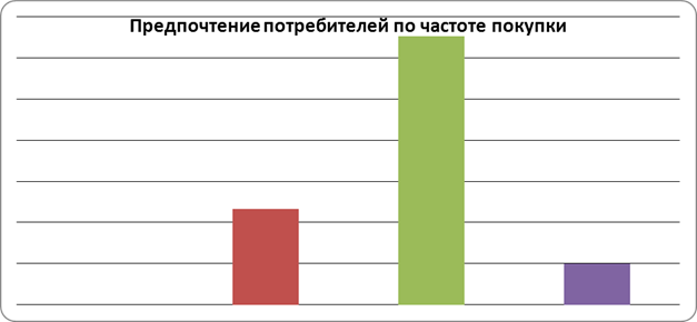 Для выявления потребительских предпочтений мы задали респондентам ряд вопросов. На вопрос покупаете ли Вы детское питание, 100% респондентов ответили положительно. Также мы узнали, что 0% респондентов покупают детское питание каждый день, в основном, большая часть опрошенных приобретает детское питание один раз вы неделю, что составило 65,3%.