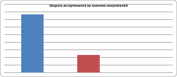 Теперь проведем анализ и составим динамику частоты наличия в продаже исследуемого детского питания в предприятиях торговли, по мнению покупателей. По мнению покупателей, товары постоянного предложения являются каши и пюре, и в процентном соотношении составляет 40%, а товары периодического предложения являются смеси и соки, что тоже составило 40%, ну и товары редкого предложения и менее приобретаемого товара, по мнению покупателей – это чай, который составил 20%. Анализ частоты наличия детского питания по опросам торговых работников и покупателей показал, что мнения совпадают. Но у покупателей на периодичность или постоянства наличия товаров, влияет в основном то, что покупатели разные и естественно покупают детское питание по разному, например, кто-то берет только пюре, те, кто не имеют возможности грудного вскармливания приобретают детские сухие молочные смеси, так же зависит от возраста ребенка, некоторые покупатели приобретают только смеси, а некоторые уже и прикорм, т.е. пюре, каши, соки. Тем самым покупатели видят в наличие только тот товар, который им самим необходим, что существенно различается с мнениями торговых работников о частоте наличия в продаже детского питания, но проведенный анализ показал, что все таки их мнения совпадают. Для более подробного анализа ассортимента детского питания г.Красноярска рассмотрим широту, полноту и устойчивость ассортимента. Показатели ассортимента — это качественное выражение свойств ассортимента. Широта ассортимента — количество видов, разновидностей и наименований товаров однородных и разнородных групп. Это свойство характеризуется двумя абсолютными показателями – действительной широтой и базовой широтой, а также относительными показателем – коэффициентом широты. Действительная широта (Шд) – фактическое количество видов, разновидностей и наименований товаров, имеющихся в наличии. Базовая широта (Шб) – широта, принятая за основу для сравнения. В качестве базовой широты может быть принято количество видов, разновидностей и наименований товаров, регламентированное нормативными или техническими документами. Коэффициент широты (Кш) выражается отношением действительного количества видов, разновидностей и наименований товаров однородных и разнородных групп к базовому. Широта выступает в качестве одного их критериев конкурентоспособности фирмы. Таким образом, для изготовителей и продавцов расширение ассортимента - мера скорее вынужденная, чем желательная. Чем шире ассортимент, тем более разнообразные потребности могут быть удовлетворены. С другой стороны, при сверхвысокой широте ассортимента потребителю трудно сориентироваться в этом разнообразии, что затрудняет выбор нужного товара. Поэтому широта не может служить единственным показателем рациональности ассортимента. Таблица 12 «Анализ широты ассортимента исследуемого детского питания в разрезе предприятий торговли г.Красноярска»