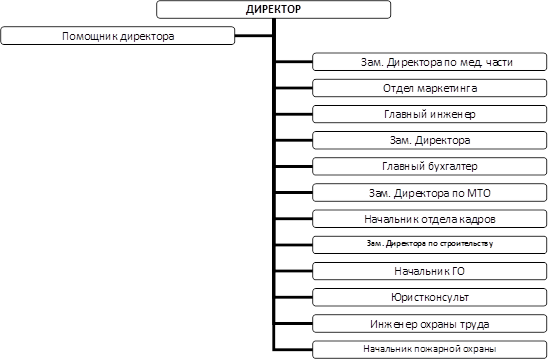 Таким образом, в составе флоры парка выявлено около 150 экземпляров редких и охраняемых видов, что в месте с деревьями долгожителями составляет примерно 40% от общего числа древесных экзотов парка. Это означает, что примерно каждое второе дерево парка ценно в том или ином отношении. Фауна парка почти полностью соответствует фауне всего южнобережья. 1.5 Структура Государственного предприятия "Санаторий Гурзуфский"С 19 февраля 2003 года Указом Президента Украины санаторий передан в Государственное Управление Делами Президента Украины (Государственное предприятие "Санаторий "Гурзуфский").Гурзуфский парк-памятник садово-паркового искусства передан под охрану Государственного предприятия "Санаторий "Гурзуфский", охранное обязательство № ОПСП-27 от 22.07.2003 года.Таким образом парк Гурзуфский находится в распоряжении Государственного предприятия "Санаторий "Гурзуфский" и от деятельности данного предприятия зависит состояние экосистемы парка. Деятельность предприятия во многом зависит от его структуры (рис. 1.2 ).
