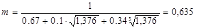 где А =200 - для Европейской части и районов Российской Федерации южнее 500 с.ш., для остальных районов Нижнего Поволжья, Кавказа, Молдовы, для Азиатских республик, Казахстана, Дальнего Востока и остальной территории Сибири;; F= 1- безразмерный коэффициент, учитывающий скорость оседания вредных веществ в атмосферном воздухе (для газообразных вредных веществ и мелкодисперсных аэрозолей (пыли, золы и т.п.), скорость упорядоченного оседания которых практически равна нулю); М m и n - безразмерные коэффициенты, учитывающие условия выхода дымовых газов из устья дымовой трубы; η - безразмерный коэффициент, учитывающий влияние рельефа, местности; в случае ровной или слабопересеченной местности с перепадом высот, не превышающим 50 м на 1 км, η=1,0; N = 2 - число одинаковых дымовых труб( 8 котлов); V1 - объем дымовых газов, приходящийся на дымовые трубы, м3 /с; ΔТ=Тг -Тв = 74,9 К - разность температур выбрасываемых дымовых газов Тг = =(423 - 50) К и окружающего атмосферного воздуха Тв =298,1 К; ПДК - предельно допустимая концентрация вещества, лимитирующего чистоту воздушного бассейна, мг/м3 . Так ПДКSO 2 = 0,5 мг/м3 ; При определении значения ΔТ следует принимать температуру окружающего атмосферного воздуха Тв равной средней максимальной температуре наружного воздуха наиболее жаркого месяца года по СНиП 2.01.01-82, а температуру выбрасываемых в атмосферу дымовых газов Тг – в устье дымовой трубы.