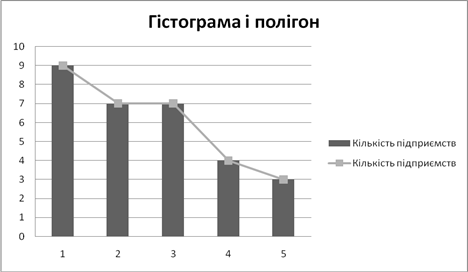 Рис.4. Гістограма і полігон Таблиця 7. Зведені дані результативного групування