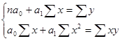 Невідомі параметри а0 і а1 знаходять способом найменших квадратів, розв’язуючи систему рівнянь: