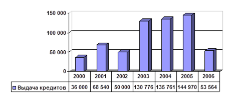 тыс. руб. Рис.2. Динамика освоения средств из республиканского бюджета ЧР на цели ипотечного кредитования по годовым лимитам за 2000-2006 гг. Процент выполнения (соотношение использования кредитов по плану и по факту): 2004 год - 93%, 2005 год - 96,7%, 2006 год - 97,5%. В 2006 году бюджетных средств было выделено на 91,41 млн. руб. или на 63,06 % больше, чем в предыдущем году. Благодаря этому все большее количество социально незащищенных граждан республики имеют возможность улучшить свои жилищные условия путем строительства нового жилья, ведь на сегодняшний день эта проблема остается для нас одной из главных. Проделанная работа позволила АКБ "Чувашкредитпромбанк" ОАО обеспечить освоение бюджетных средств (выдать кредиты) в 2006 году в сумме 53,56 млн. руб., в 2005 году - в сумме 145 млн. руб. рублей. В 2002 году реально к кредитованию приступили только в мае, так долго не мог решиться вопрос на уровне Правительства ЧР о том, кому отдать функции уполномоченного агента по ипотеке. Было решено продолжить ипотечное кредитование в АКБ "Чувашкредитпромбанк" ОАО на уровне регионов ЧР, исключение составил г. Шумерля. Кредитование же городов ЧР осуществлялось специально созданной для этих целей Ипотечной корпорацией, которая работала по классической схеме ипотечного кредитования (высокая плата за пользование кредитом (10% годовых) - процентная ставка, большой первоначальный взнос (не менее 70% от стоимости приобретаемого жилья) и небольшой срок кредитования (3-10 лет). Далее рассмотрим структуру граждан, оформивших ипотечные кредиты в период 2004-2006 гг. - с момента ввода ипотеки в ЧР. Среди них в 2004 году, преобладали работники промышленных предприятий (46,7 % от общего количества граждан) и работники бюджетной сферы (46,3 %), в 2005 году - соответственно 42,7 % и 28,8 %, в 2006 году - соответственно 46,2 % и 22,7 %. Количество работников бюджетной сферы за 2004-2006 гг. практически осталась без изменений это связано с тем, именно эта категория относится к незащищенным слоям населения и нуждается в улучшении жилищных условий. В то же время количество работников промышленных предприятий в 2005 году уменьшилось на 17,5 %, а в 2006 году - на 6,1 %. На первых этапах развития ипотечного кредитования в ЧР, недостаточно была развита организация строящихся квартир. Строителям было невыгодно строить квартиры для этих целей из-за их дешевой стоимости. Отсутствие малогабаритного жилья, отвечающего социальным нормам, в первую очередь в г. Чебоксары, и неосведомленность и боязнь сельского населения сдерживали ипотечное кредитование. Средний размер кредитов, выданных в 2000 - 2001 гг. жителям районов составил 61,3 тысяч рублей, городов - 123,7 тысяч рублей, в 2002 году соответственно 70,8 тысяч рублей и 109,8 тысяч рублей. Из общего объема погашенных кредитов полностью погашены кредиты: в 2000 году - 9, в 2001 году - 26, в 2002 году - 90, в том числе городское население: 2000 г. - 100 %, 2001г. - 96 %, 2002 г. - 75,6 %. Видно, что срок фактического возврата кредитов, выданных в разрезе городского и сельского населения существенно отличается. Так, по состоянию на 1 января 2003 года в составе досрочно погашенных кредитов 88,6 % (9,3 млн. рублей) составляют кредиты, выданные городским жителям. Гашение кредитов подавляющим большинством сельских жителей осуществляется строго по графику. Приведенные выше цифровые данные свидетельствуют о том, что внедрение рыночного механизма ипотечного кредит