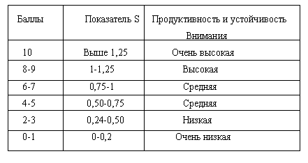 II серия эксперимента: Изучение устойчивости внимания «Найди и вычеркни» (модифицированная методика Бурдона «Корректурная проба»). Цель : диагностика продуктивности и устойчивости внимания. Описание : ребенок работает по инструкции с рисунком, на котором в случайном порядке изображены простые фигуры. Ему дано задание искать и разными способами зачеркивать две неодинаковые фигуры: звездочку перечеркивать вертикальной линией, а кружок – горизонтальной. Ребенок работает 2,5 минуты, в течение которых пять раз подряд (через каждые 30 секунд) ему говорят «начинай» и «стоп». Экспериментатор отмечает на рисунке то место, где даются соответствующие команды. Оборудование : рисунок с изображением простых фигур, часы с секундной стрелкой, простой карандаш. Инструкция : « Сейчас мы с тобой поиграем в такую игру: я покажу тебе картинку, на которой нарисовано много разных знакомых тебе предметов. Когда я скажу «начинай», ты по строчкам этого рисунка начнешь искать и зачеркивать названные мной фигуры. Это необходимо будет делать до тех пор, пока я не скажу «стоп». В это время ты должен будешь остановиться и показать мне то изображение предмета, которое ты увидел последним. Я отмечу на твоем рисунке место, где ты остановился и снова скажу «начинай». После этого ты продолжишь искать и вычеркивать из рисунка заданные предметы. Так будет несколько раз, пока я не скажу слово «конец». На этом выполнение задания завершится». Фиксируемые параметры : t – время выполнения задания; N- количество изображений предметов, просмотренных за все время работы, а также отдельно за каждые 30 секунд; n – количество допущенных ошибок (пропущенные нужные изображения или зачеркнутые ненужные изображения). Обработка результатов : Подсчитывается количество предметов на рисунке просмотренных ребенком за время выполнения задания, количество допущенных ошибок. Полученные значения подставляются в формулу, по которой определяется показатель уровня развития у ребенка одновременно двух свойств внимания: продуктивности и устойчивости. S = (0,5 N – 2,8 n )/ t , где S – показатель продуктивности и устойчивости; N – количество просмотренных предметов; n – количество ошибок; t – время выполнения задания. Нормативы: