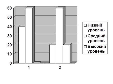 График 6. Сравнение уровней развития объема внимания (констатирующий и контрольный эксперимент)