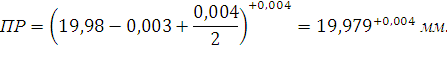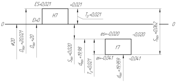 отверстия ∅20: ES=+0,021; EI=0.