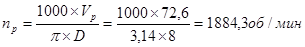 Согласуем со станком и принимаем =1000дв.ход/мин.