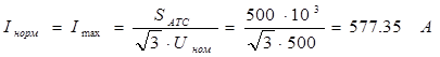 Выбираем элегазовый выключатель наружной установки марки ВГБУ-500-40/3150У1. Выбираем горизонтальный разъединитель для наружной установки марки РНДЗ-2-500/3200У1. Таблица 11. Выбор выключателей и разъединителей в цепи высокого напряжения 500кВ.