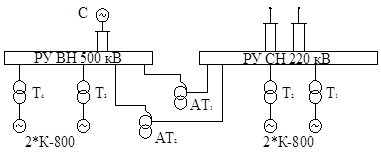 В нашем проекте примем, что Для выбора автотрансформаторов необходимо рассмотреть передачу через него мощности из РУСН в РУВН, для чего рассматривают различные режимы работы трансформаторов: 1) нормальный режим зимой. 2) нормальный режим летом. 3) авария в системе летом. 4) отказ одного генератора зимой. 1.2.1.1) Выбор трансформаторов на 220 кВ: