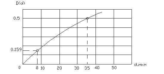 Порядок расчета рассмотрим на примере. 1. На основании заданного гранулометрического состава строим интегральный график распределения частиц по крупности (воспользовавшись предварительно найденной интегральной суммой mi