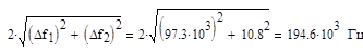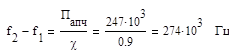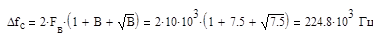 Подставляя полученные значения в формулу (1) получим требуемую полосу пропускания приемника Птреб =224800+194600=419400 Гц Так как