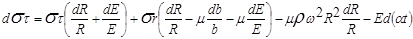где Согласно нормам прочности минимальный запас по статической прочности профильной части рабочей лопатки компрессора должен быть не менее 1,5. Вычисления делаем по программе кафедры 203 Statlop.exe. Результаты расчета приведены в приложении 2.1. Вывод: Полученные значения запасов прочности во всех сечениях удовлетворяют нормам прочности(k>1,5); коэффициент запаса прочности завышен, так как помимо статических нагрузок на перо лопатки действуют и динамические нагрузки. Расчет на прочность диска компрессора Диски компрессора – это наиболее ответственные элементы конструкций газотурбинных двигателей. От совершенства конструкций дисков зависит надежность, легкость конструкций авиационных двигателей в целом. Нагрузки, действующие на диски Диски находятся под воздействием инерционных центробежных сил, возникающих при вращении от массы рабочих лопаток и собственной массы дисков. Эти силы вызывают в дисках растягивающие напряжения. От неравномерного нагрева дисков турбин возникают температурные напряжения, которые могут вызывать как растяжения, так и сжатие элементов диска. Кроме напряжений растяжения и сжатия, в дисках могут возникать напряжения кручения и изгиба. Напряжения кручения появляются, если диски передают крутящий момент, а изгибные – возникают под действием разности давлений и температур на боковых поверхностях дисков, от осевых газодинамических сил, действующих на рабочие лопатки, от вибрации лопаток и самих дисков, под действием гироскопических моментов, возникающих при эволюциях самолета. Из перечисленных напряжений наиболее существенными являются напряжения от центробежных сил собственной массы диска и лопаточного венца, а также температурные (в случае неравномерного нагрева диска). Напряжения изгиба зависят от толщины диска и способа соединения дисков между собой и с валом и могут быть значительными лишь в тонких дисках. Напряжения кручения обычно невелики и в расчетах в большинстве случаев не учитываются. Допущения, принимаемые при расчете · диск считается симметричным относительно серединной плоскости, перпендикулярной оси вращения; · диск находится в плосконапряженном состоянии; · температура диска меняется только по его радиусу и равномерна по толщине; · напряжения на любом радиусе не меняются по толщине; · наличие отверстий и бобышек на полотне диска, отдельных выступов и проточек на его частях не принимается во внимание. Основные расчетные уравнения для определения упругих напряжений в диске от центробежных сил и неравномерного нагрева Для расчета диска на прочность используем два дифференциальных уравнения: