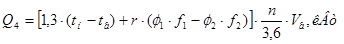 Q4 -теплоприток при вентилировании вагона Q4 рассчитывается :