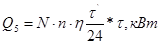 где N – мощность электродвигателя вентилятора, кВт; n – число электродвигателей; h - КПД электродвигателей (0,85-0,95); t` - продолжительность работы электродвигателя (5-12 часов). Q6 - энергия необходимая для снижения температуры воздуха Q6 определяется: