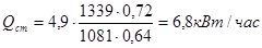 Тогда по табличным значениям определяем: qv ст =1339кДж/м3 , lст =0,72; qv р =1081,4кДж/м3 , lр =0,64.