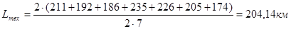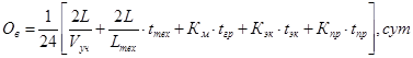 где L – полный рейс вагона, км; Vуч – участковая скорость, км/ч; Lтех – вагонное плечо, км; tгех - простой транзитного вагона с переработкой; Км – коэффициент местной работы; tгр – средний простой вагона на одной станции с грузовой операцией, ч; Кэк ,Кпр – соответственно, коэффициент экипировки и промывки вагонов; tэк ,tпр – соответственно, время экипировки и промывки вагонов; lэк ,lпр – расстояние следования вагонов, соответственно, до станции экипировки и промывки вагонов, км. Полный рейс вагона состоит груженого и порожнего пробега - 2858 км Участковая скорость за полный рейс вагона состоит из средней скорости движения по участку, с учетом времени стоянок на станциях - 35 км/ч. Коэффициент местной работы показывает, какое количество станций проходит вагон за оборот – 2 Коэффициенты промывки и экипировки показывают , какое количество раз вагон промывается и экипируется за время оборота - 1 Вагонное плечо – среднее расстояние между техническими станциями за время оборота.