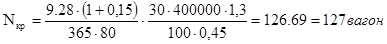 1.3 Определение размеров погрузки Количество вагонов для перевозки каждого вида груза определяется:
