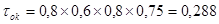 де τ1 – коефіцієнт світло пропускання матеріалу. Приймаємо 0,8, тому що використовується скло віконне листове подвійне; τ2 – коефіцієнт, що враховую втрати світла в плетіннях вікна. Приймаємо 0,6, тому що використовується плетіння дерев’яні розділені; τ3 – коефіцієнт, що враховує втрати світла в несучих конструкціях. Приймаємо 0,8, тому що є залізобетонні й дерев’яні ферми й арки; τ4 – коефіцієнт, що враховує втрати світла в сонцезахисних пристроях. Приймемо 0,75, тому що використовуються стаціонарні жалюзі (вертикальні).
